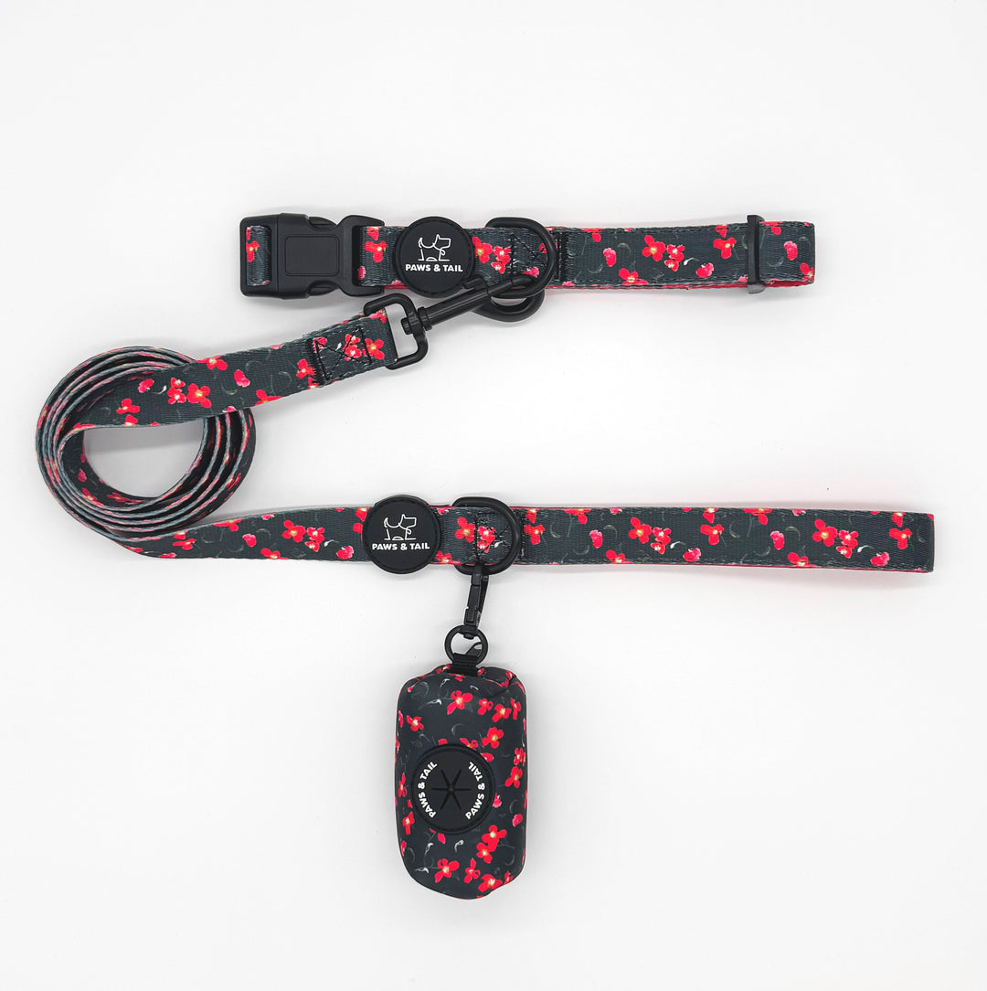 Our Dog Collar Set brings together style, convenience, and reliability in one matching trio. Each set includes a comfortable adjustable collar, a durable leash, and a coordinated waste bag holder — designed to make every walk look and feel effortless.